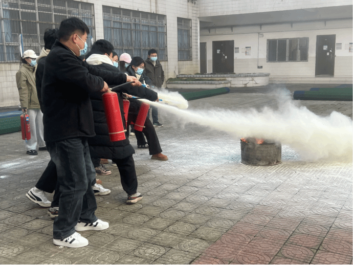 实操环节中,太阳集团工作人员演示了干粉灭火器的正确使用方法,并组织师生分组进行油盆灭火练习。大家通过“提、拔、握、压”口诀熟悉操作步骤,进一步巩固了灭火技能。整个演练过程组织严密、衔接顺畅。