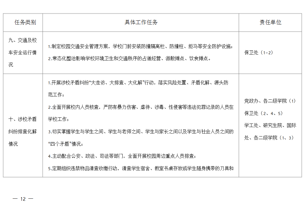 任 务:排查化解师生矛盾纠纷;加强校园周边重点人员排查,与相关部门形成联动;