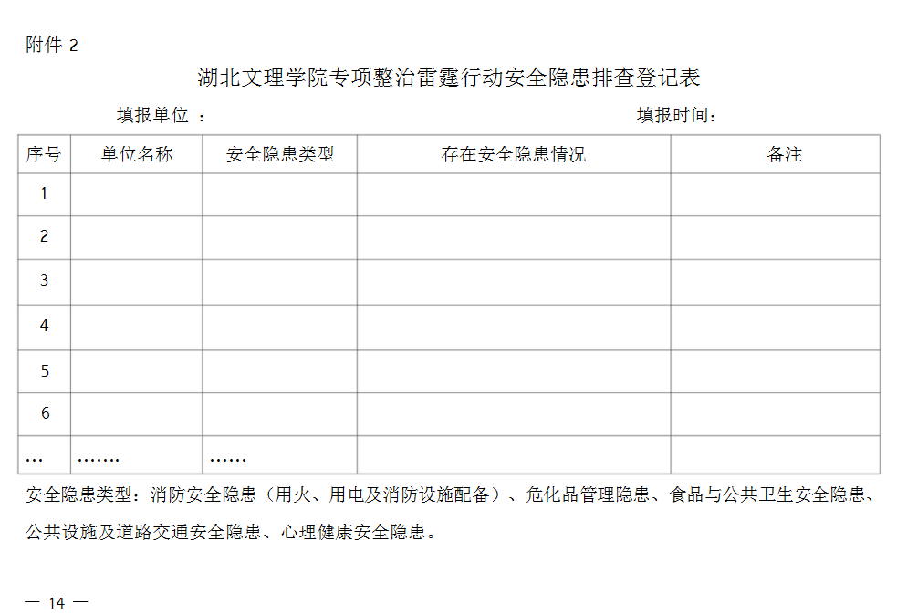 2.湖北文理学院专项整治雷霆行动安全隐患排查登记表